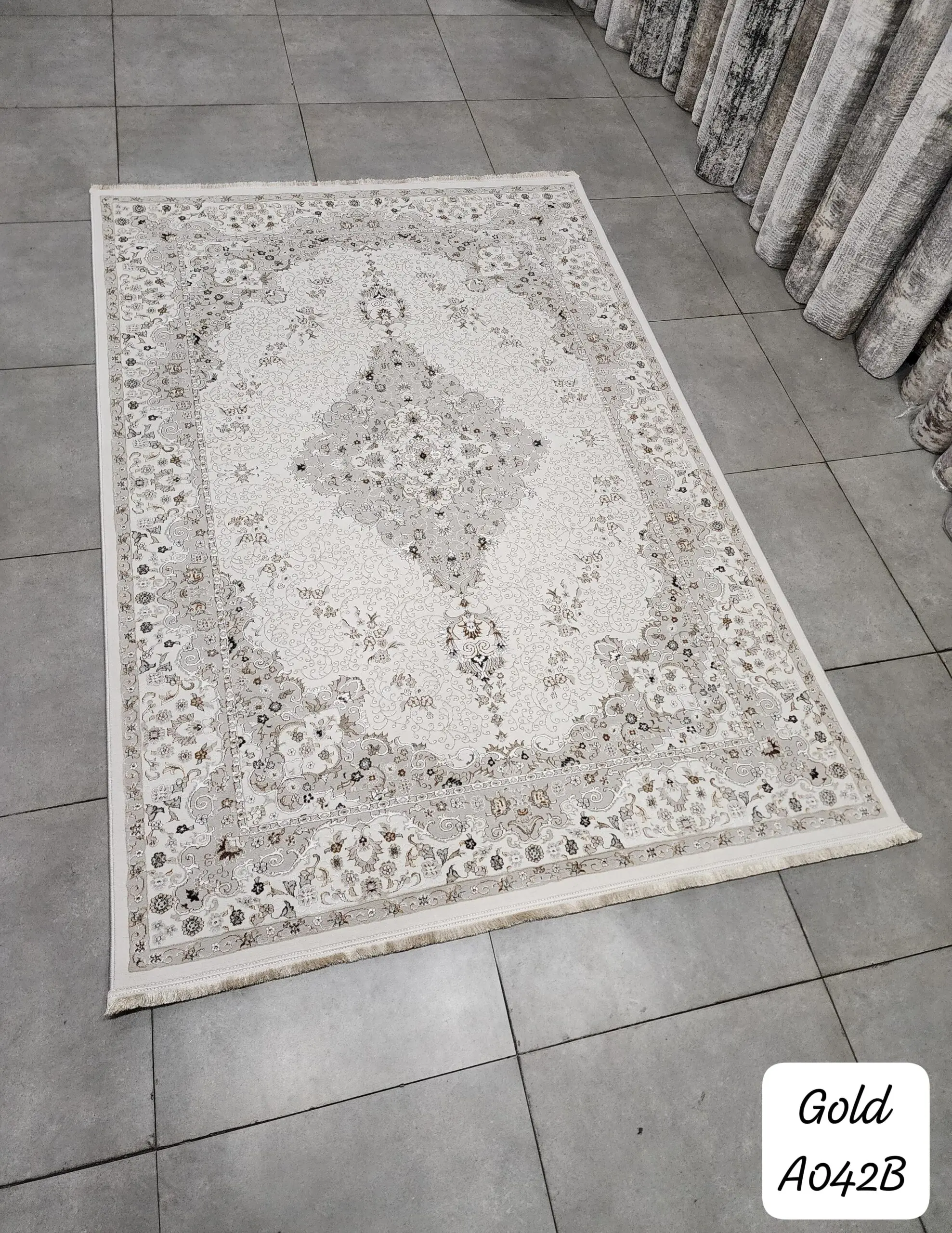 Gold Karpet Permadani merupakan karpet rumah dengan motif klasik impor buatan Turki. Terbuat dari material bahan benang polyester pilihan kualitas terbaik. Mempunyai corak timbul yang memberi kesan Elegan, Estetik, dan Mewah, nyaman untuk setiap interior rumah, ruang tamu, kamar tidur atau ruang keluarga.