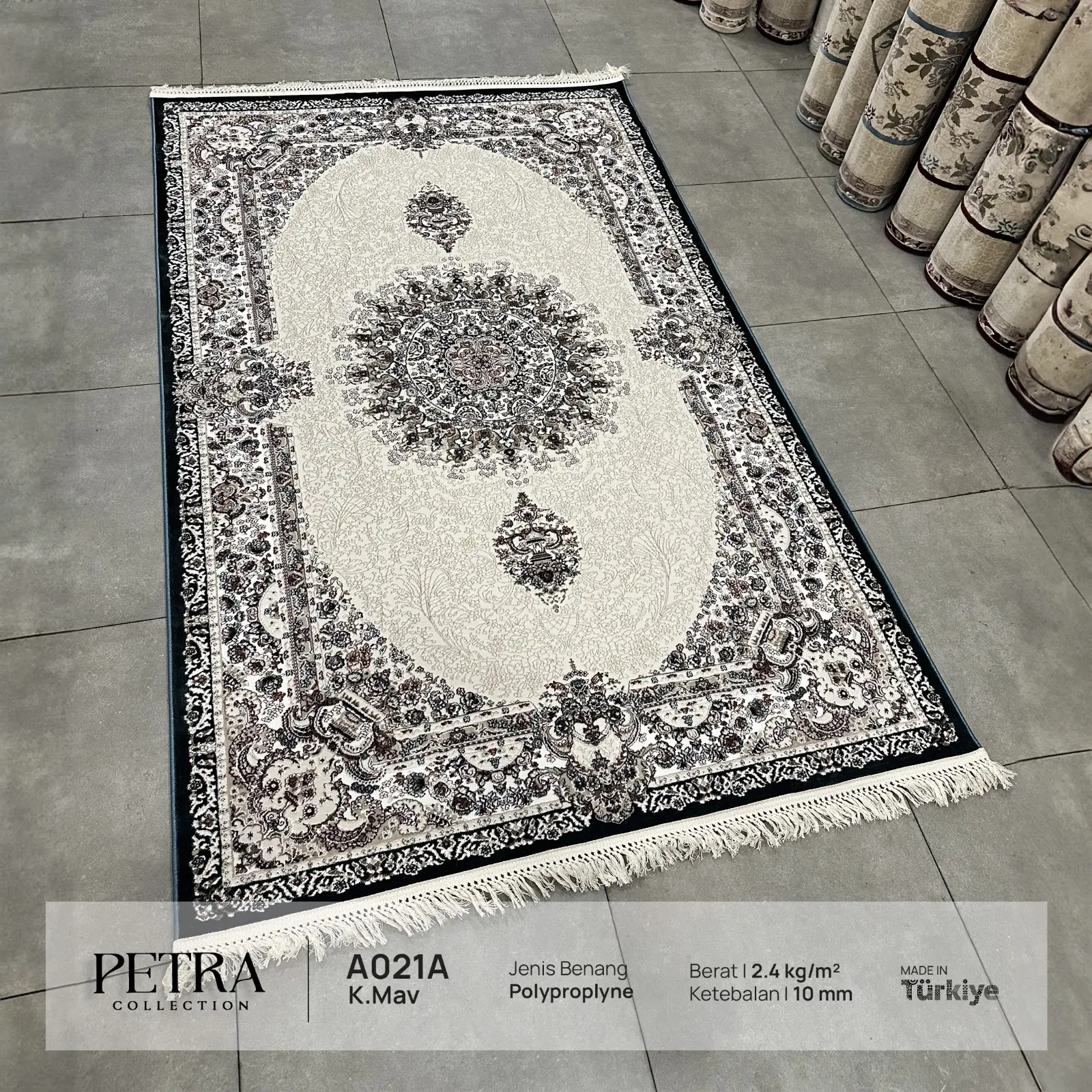 Petra Karpet Permadani merupakan karpet rumah dengan motif klasik impor buatan Turki. Terbuat dari material bahan benang polyester pilihan kualitas terbaik. Mempunyai corak timbul yang memberi kesan Elegan, Estetik, dan Mewah, nyaman untuk setiap interior rumah, ruang tamu, kamar tidur atau ruang keluarga.