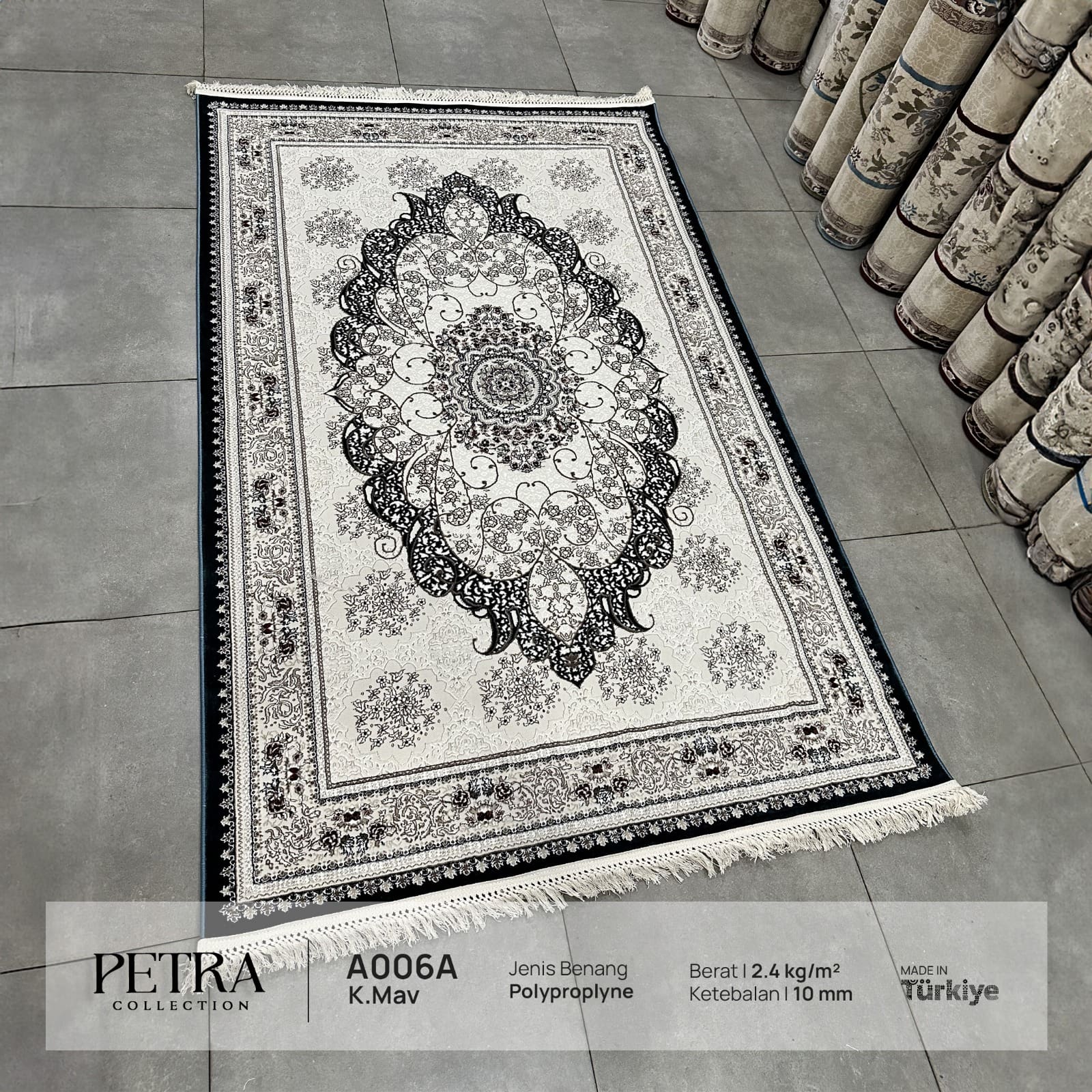 Petra Karpet Permadani merupakan karpet rumah dengan motif klasik impor buatan Turki. Terbuat dari material bahan benang polyester pilihan kualitas terbaik. Mempunyai corak timbul yang memberi kesan Elegan, Estetik, dan Mewah, nyaman untuk setiap interior rumah, ruang tamu, kamar tidur atau ruang keluarga.