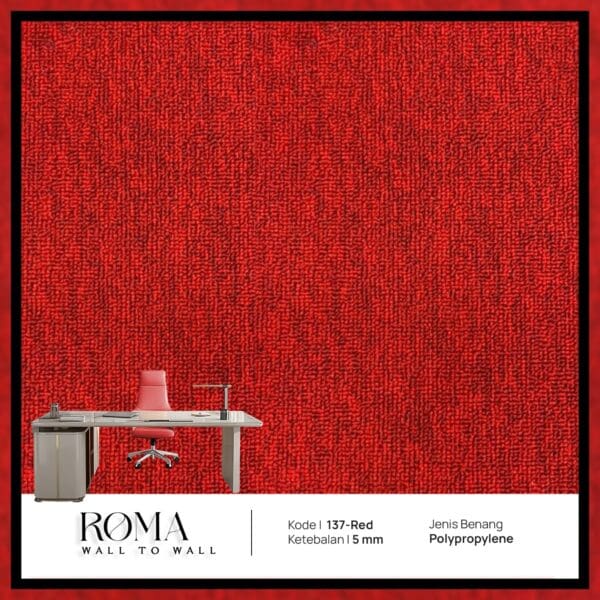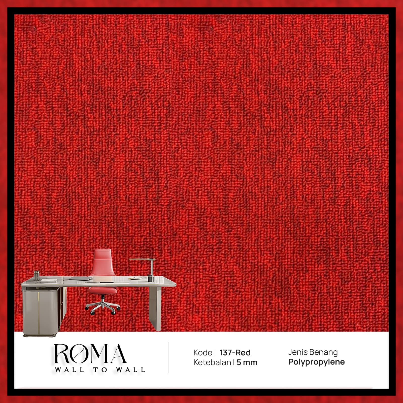 Roma karpet meteran wall to wall membuat menjadikan ruangan unik, modern dan mengundang meningkatkan lingkungan kerja, ramah lingkungan, mudah dibersihkan dan dirawat. Sangat ideal untuk digunakan di kantor, hotel, sekolah, museum, rumah sakit, bandara dan di tempat lain dengan tingkat rutinitas harian yang padat.