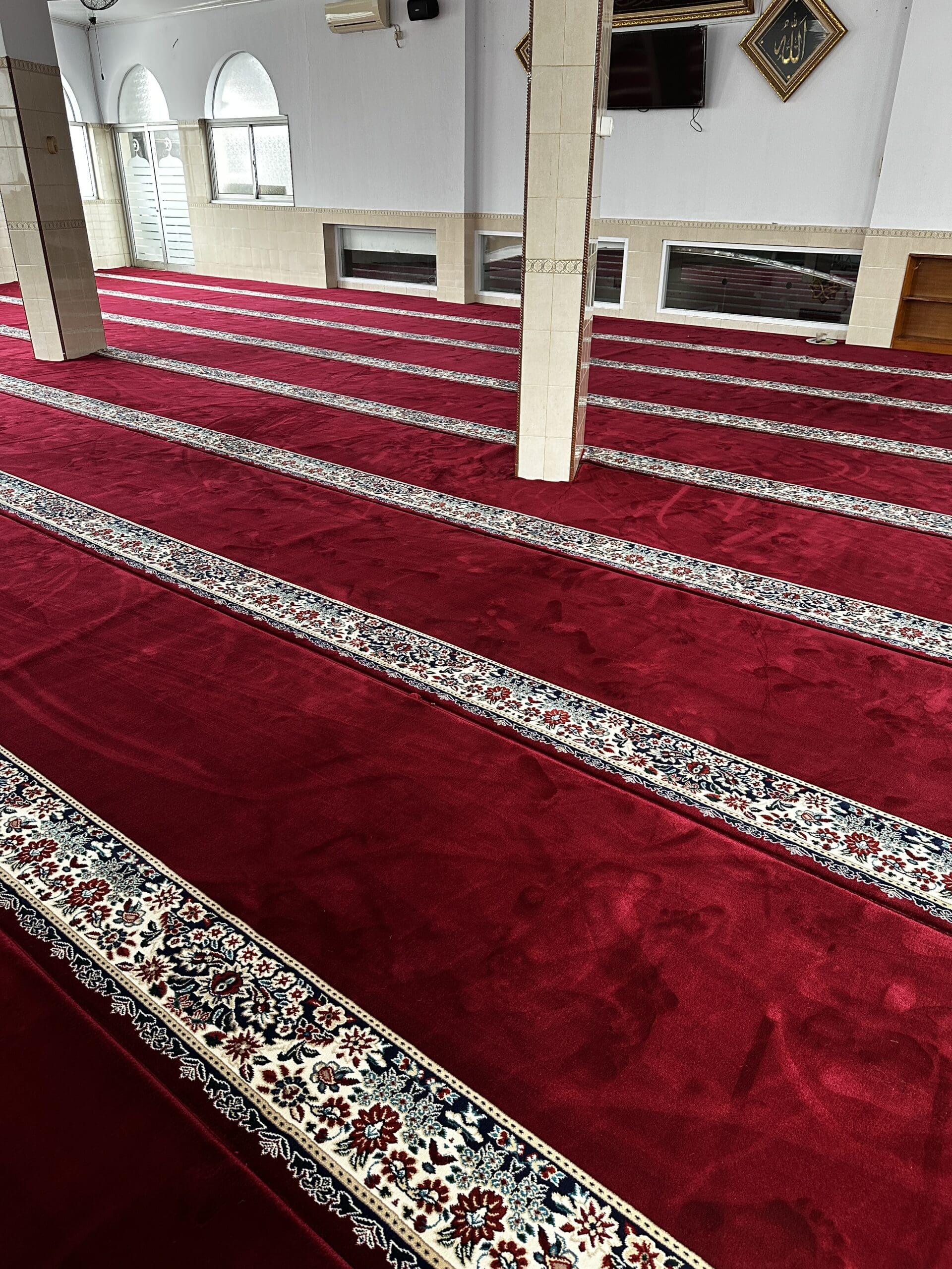 Karpet Masjid import Turkey nyaman, tebal, dan empuk dengan lebar shaf 1,2 meter. Ukuran bisa disesuaikan dengan kebutuhan ruangan anda. Proses potong dan obras dilakukan oleh profesional, sehingga hasilnya rapih dan kuat.