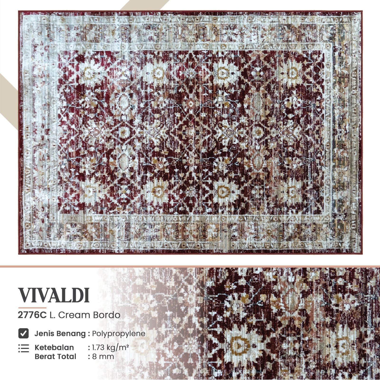 SKU Vivaldi 2776C NEW 120x180- L.cream-bordo- Categories , Tag